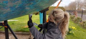 My daughter helped me on Monday with the portside, while I did the starboardsite. We worked perfectly at the same speed to the rear of the ship. She also helped me with the mount of the remote control (cables) to the Volvo Penta (marine engine). The next day I sanded the complete hull. Also I did a quick clean and polishing with wax of the freeboard. Should have done better, but not enough time.
