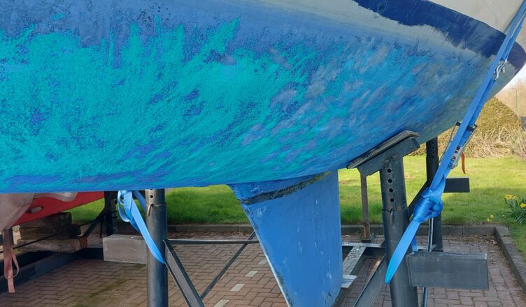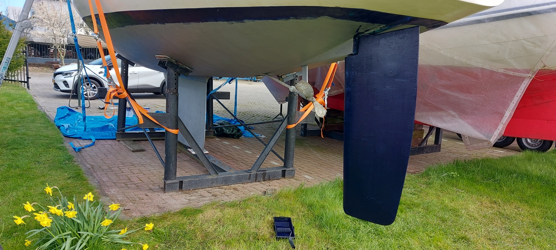 On Wednesday first I put a primer on the hull. The keel did have some rust and spacing, so a fast fix with kit. And everything was dry in time to put the antifouling paint on it. Also the propeller shaft mount to the engine (marine gear actually). At 19:00 I left with everything ready for the launch the next early morning.